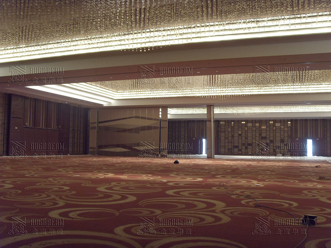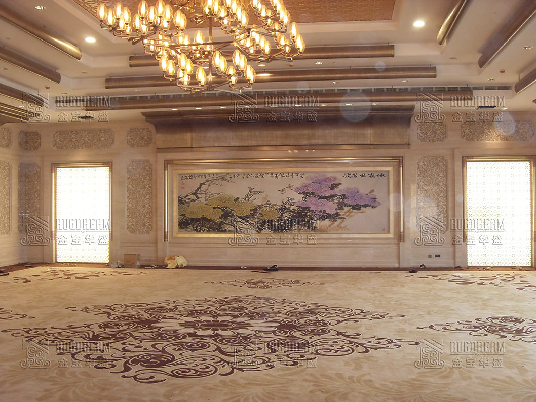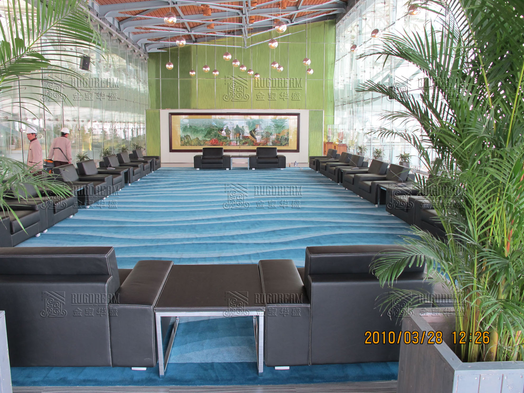 该项目我司制作约47000平方米地毯,使用手工定制地毯。地毯采用4.5磅--6.5磅进口新西兰羊毛地毯,并加入导电纤维防止出现掉毛、静电等现象。本次地毯工程得到了领导的高度好评。