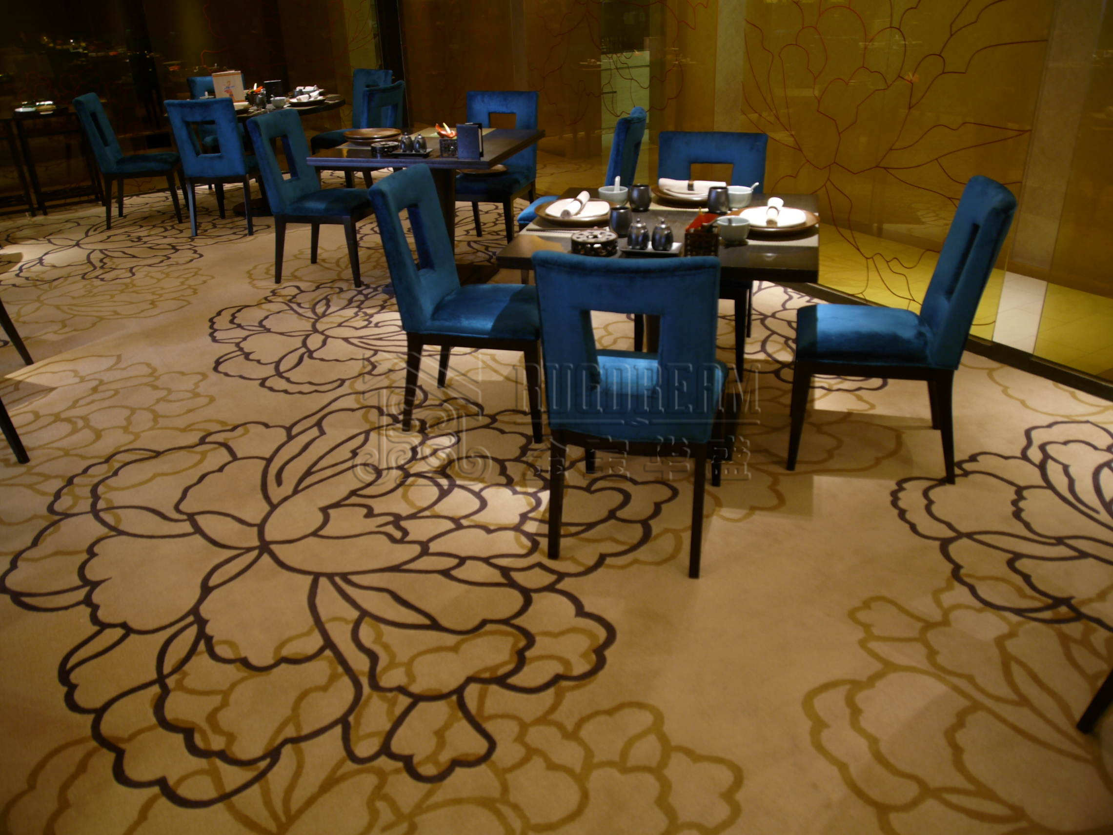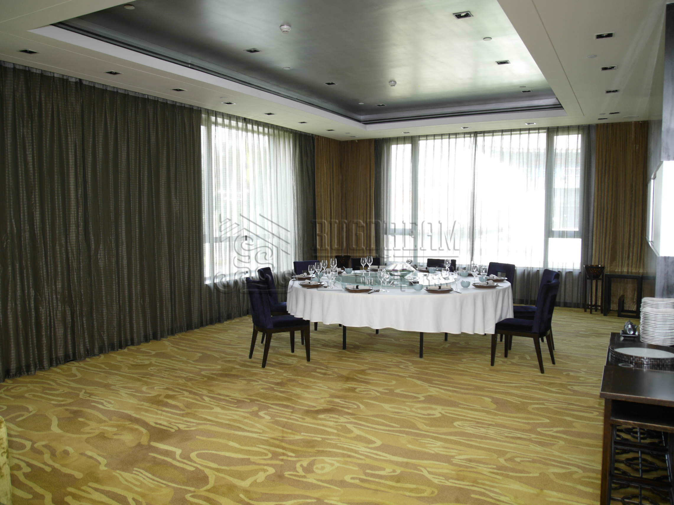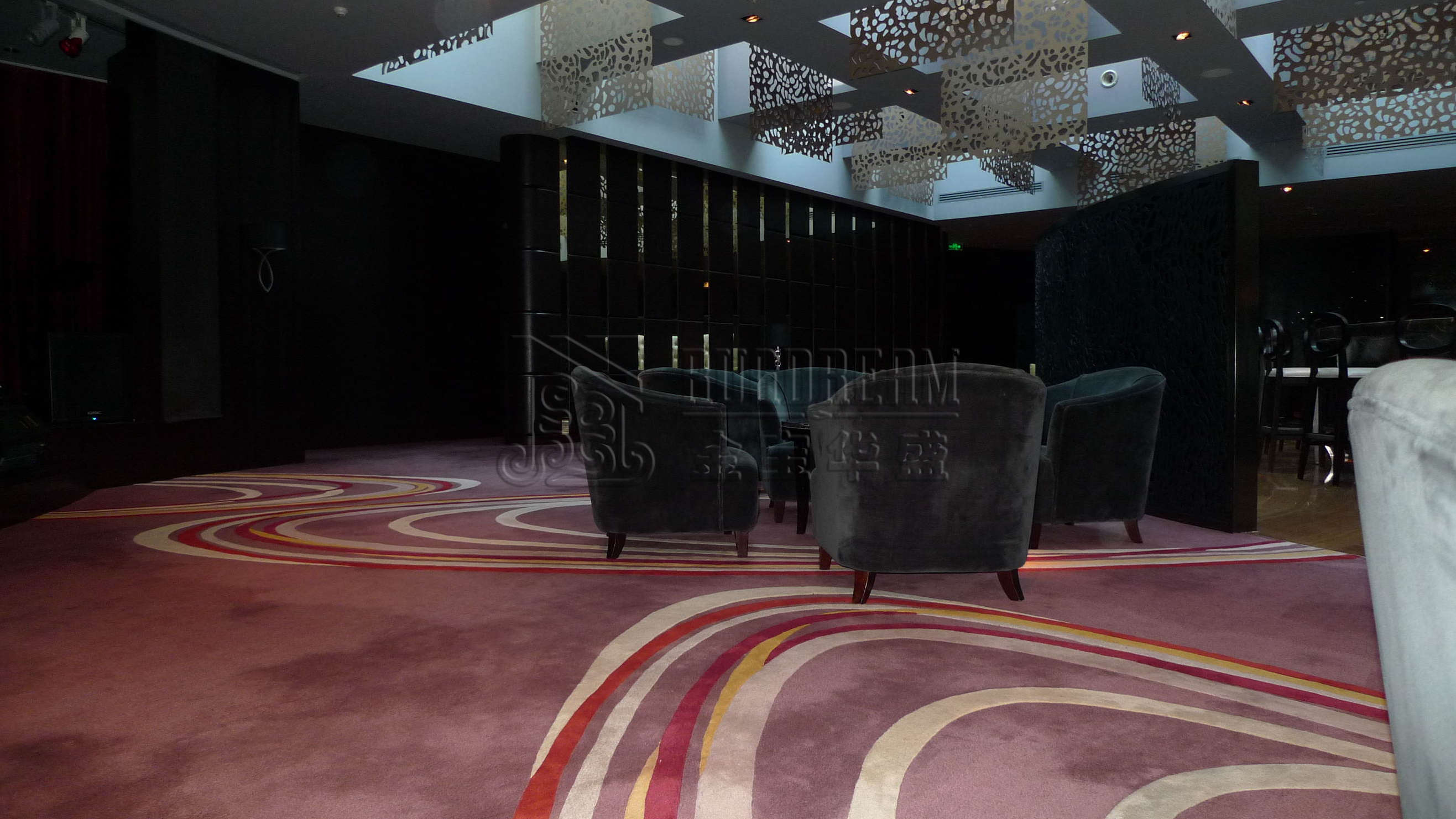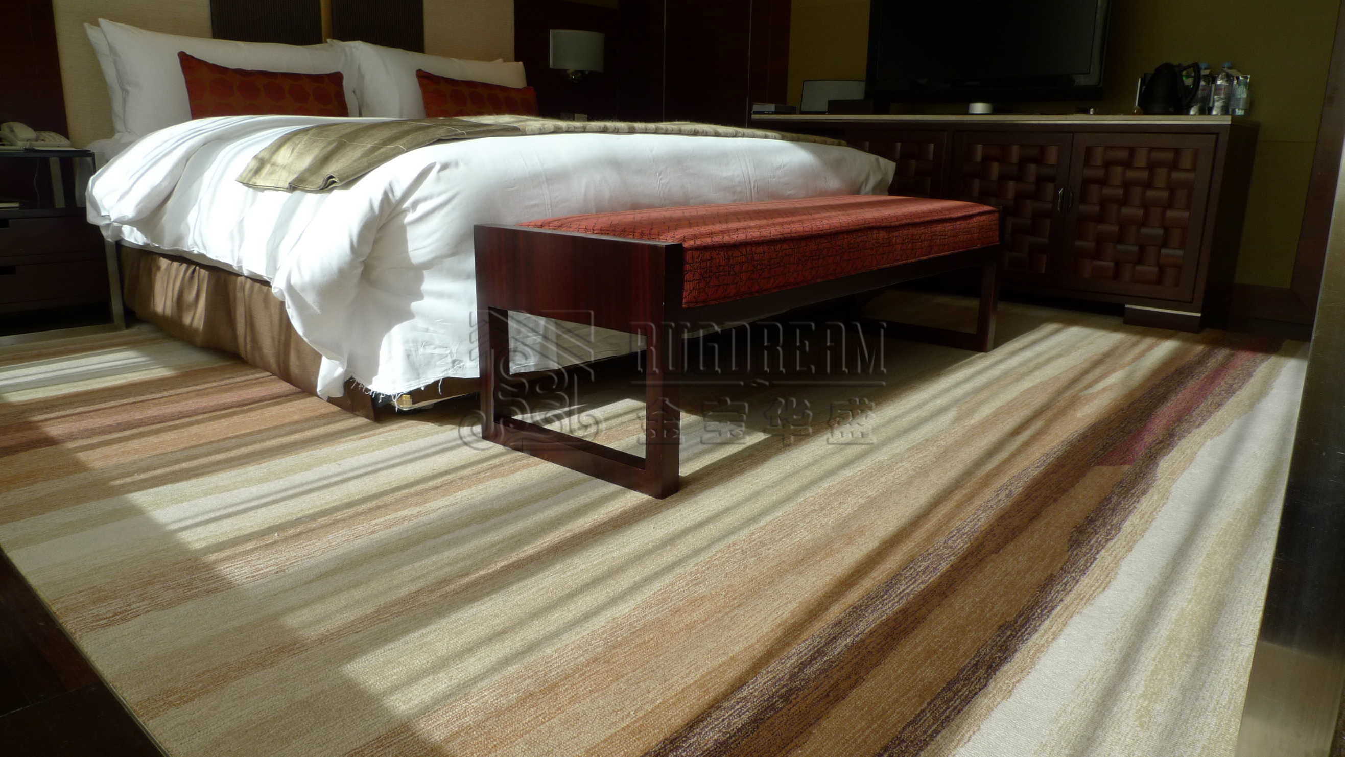 此项目的工程地毯被用作大堂地毯、宴会厅地毯、走廊地毯、客房地毯、咖啡厅地毯,雪茄吧地毯等区域地毯,并作为工程满铺地毯铺设。